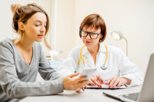 Young woman patient with gynecologist in the office